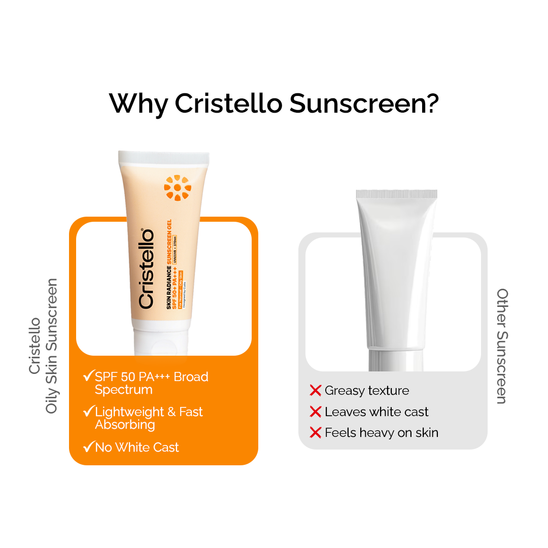 Cristello Skin Radiance Sunscreen Gel SPF 50+ PA+++ | Best Sunscreen for Normal to Oily Skin | 50g